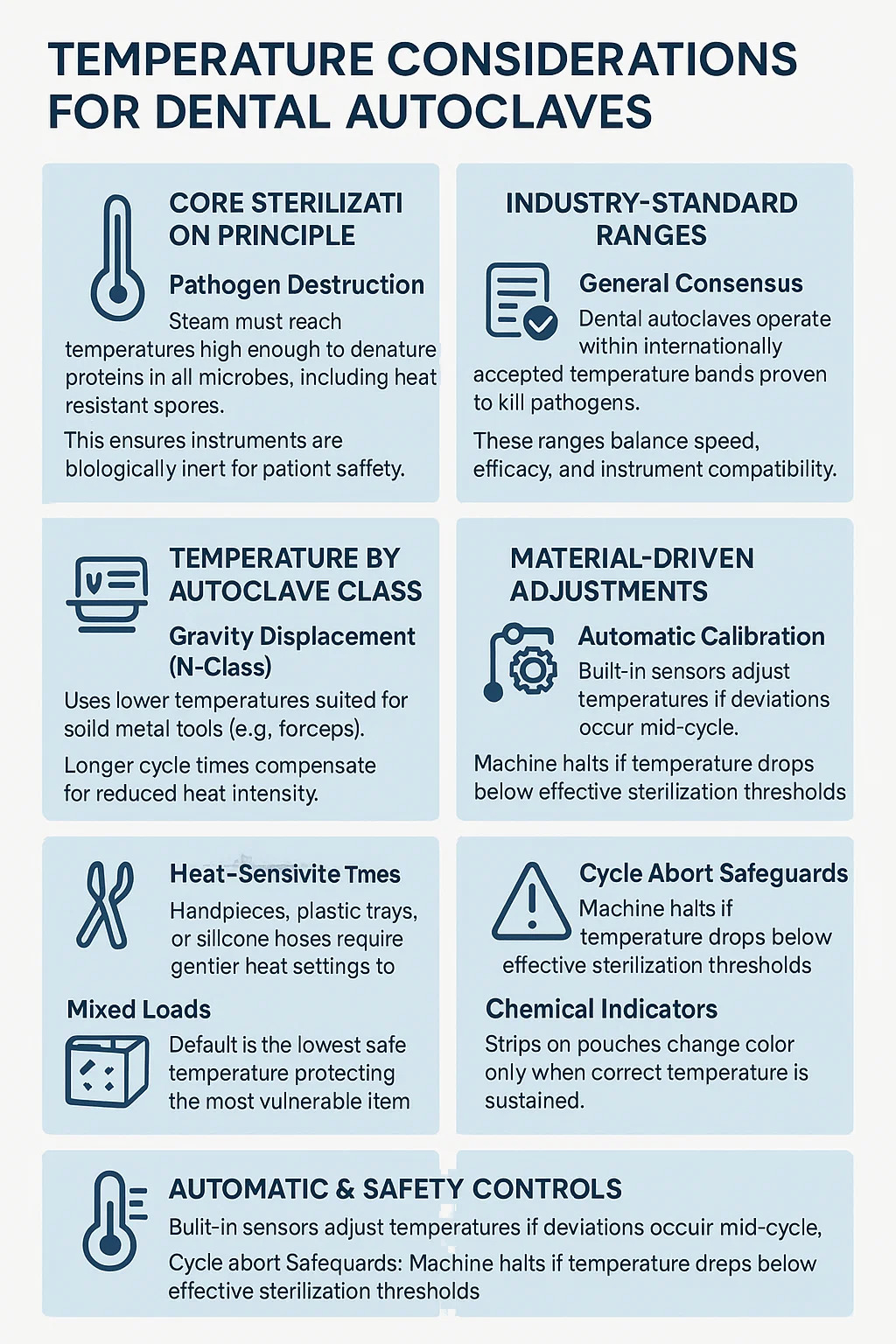 খুব বেশি → প্লাস্টিক/রাবার উপাদানের ক্ষতি করে (যেমন, হ্যান্ডপিস সিল)।
